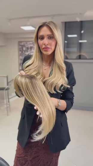 Tem a risca de silicone que imita o couro cabeludo e é toda implantada fio a fio.